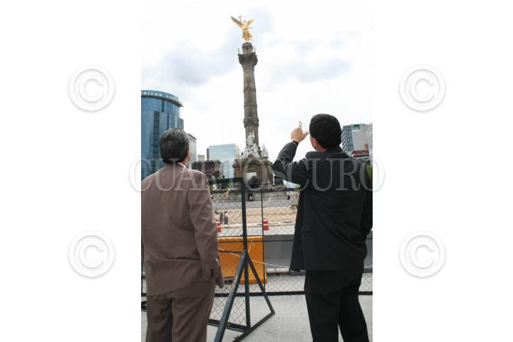 MÈXICO, D.F. 13SEPTIEMBRE2006.- Transeuntes observan los resultados de las reparaciones realizadas a la estatua del Àngel de la Independencia, despuès de un largo periodo de permanecer oculto. FOTO: PAOLA HIDALGO/CUARTOSCURO.COM