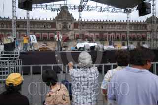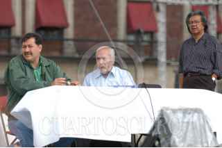 MÉXICO D.F. 13 SEPTIEMBRE 2006.- El vocero del PRD Gerardo Fernández Noroña, acompañado del investigador de la UAM Guillermo Almeida y el antropólogo Carlos San Juan, dio una conferencia sobre el futuro de la resistencia civil en el zócalo captalino. FOTO:CARLOS GUZMÁN/CUARTOSCURO.COM