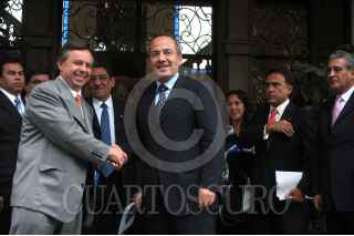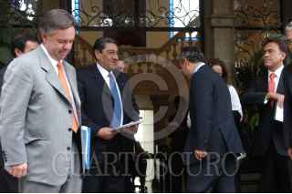 MÉXICO D.F. 17SEPTIEMBRE2006.- El secretario de Seguridad Pública, Eduardo Medina Mora, se reunió en privado con el presidente electo, Felipe Calderón Hinojosa y el subsecretario Miguel Angel Yunez, en la casa de transición. FOTO: GUILLERMO PEREA/CUARTOSCURO.COM