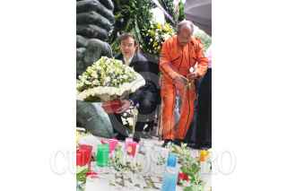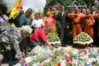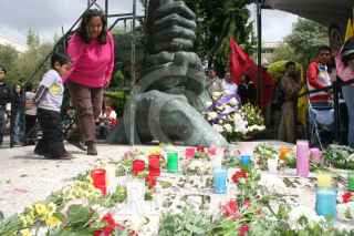 MÉXICO, D.F. 19SEPTIEMBRE2006.- En la Plaza de la Solidaridad, sitio donde se ubicaba el Hotel Regis, que se derrumbara debido al terremoto ocurrido en 1985, se rindió un homenaje a las víctimas. Frente al asta bandera se desplegó una ofrenda con veladoras y flores. FOTO: PAOLA HIDALGO/CUARTOSCURO.COM