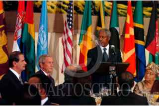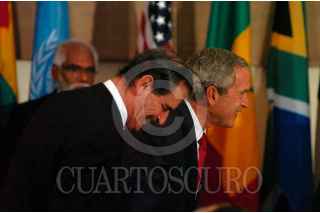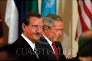 NUEVA YORK E.U.-19SEPTIEMBRE2006.- El Presidente Vicente Fox, acompañado de George W. Bush, Presidente de los Estados Unidos de América, durante el almuerzo que se realizó en honor a los Jefes de Estado y de Gobierno que asistieron a la 61 Asamblea General de la Organizacióln de las Naciones Unidas. FOTO: GUSTAVO BENÍTEZ/PRESIDENCIA/CUARTOSCURO.COM