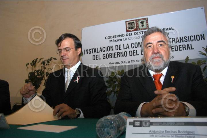 MEXICO D.F. 20SEPTIEMBRE2006.- El jefe de gobierno electo del D.F. Marcelo Ebrad Casaubon y el actual jefe de gobierno, Alejandro Encinas Rodríguez, sostubieron una reunión donde dieron a conocer la instalación de la comisión transición de gobierno. FOTO. GUILLERMO PEREA/CUARTOSCURO.COM