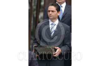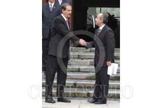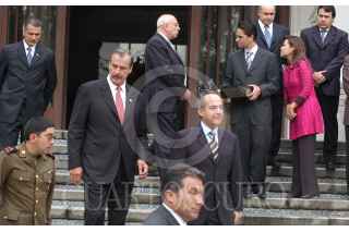 MEXICO D.F. 21SEPTIEMBRE2006.- El presidente Vicente Fox Quesada se reunio con Felipe Calderón Hinojosa, presidente electo en la residencia oficial de Los Pinos, atras Juan Camilo Mouriño, coordinador general del equipo de transición lleva los libros blancos de la administración federal. FOTO: GERMÁN ROMERO/CUARTOSCURO.COM