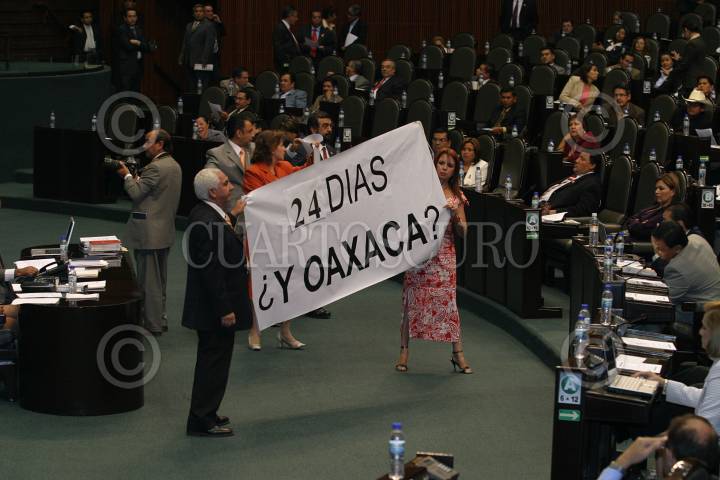 MEXICO, D.F. 21SEPTIEMBRE2006.- Diputados del partdio Convergencia para la Democracia mostraron unas mantas relacionadas con el conflicto en Oaxaca. FOTO. NELLY SALAS/CUARTOSCURO.COM
