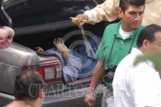 CHILPANCINGO, GUERRERO 21SEPTIEMBRE2006.- Fue encontrado el cuerpo de Martín Gerardo Saldaña Sixtos mp federal, quien fungia como secretario particular del delegado de la PGR en el estado Martin Godoy Castro, ejecutado, con la cara envuelta en cinta canela y en el interior de la cajuela de un carro Tsuru color Gris sin placas de circulacion, el cual fue abandonado cerca del centro nocturno "El Castillo de la Fantasia" en la ciudad de Chilpancingo. Cabe mencionar que el cuerpo del mp federal fue encontrado despues de que el 3 de este mes fuera "levantado" por la noche cuando cenaba en un restaurante ubicado en pleno centro de la ciudad. FOTO: OSCAR ALVARADO/CUARTOSCURO.COM