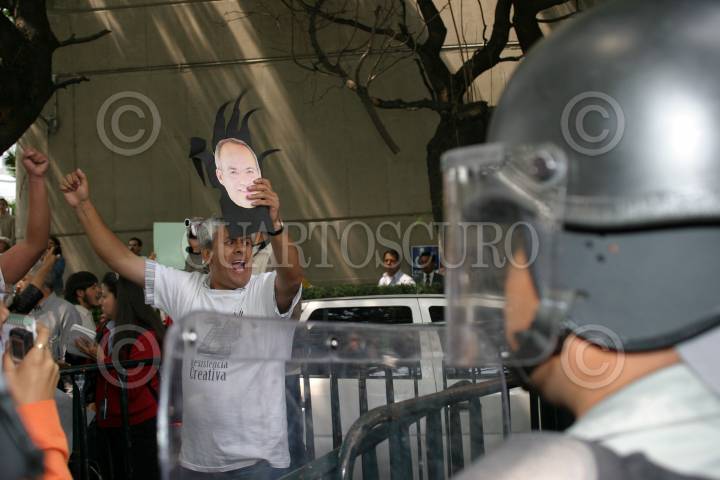 MEXICO, D.F. 28SEPTIEMBRE2006.- Integrantes de Comisión de Resistencia de la Convención Nacional Democrática durante el acto de protesta frente a la casa de Transición del presidente electo, que se encontraba custodiada por elementos de la PFP y el Estado Mayor Presidencial. FOTO: NELLY SALAS/CUARTOSCURO.COM
