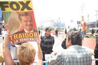GUADALAJARA, JALISCO 28SEPTIEMBRE2006.- Un grupo de personas se manifestaron afuera del evento del jefe del ejecutivo. Los manifestantes rechazan el nombramiento de presidento electo a Felipe Calderón. FOTO: JOSÉ MARÍA MARTINEZ/CUARTOSCURO.COM