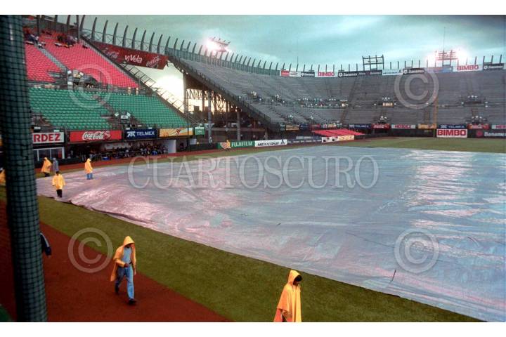 Esta tarde el segundo encuentro entre los Diablos de México y los Leones de Yucatán se tuvo que suspender por espacio de 1 hor apor lluvia. Al reiniciar el juego los Diablos sacorón ventaja de 6-1 carreras hasta la parte baja de la 5a entrada, en el Foro Sol. FOTO: David Bolaños/CUARTOSCURO.COM