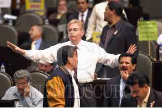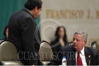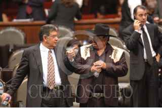 MÉXICO, D.F., 29SEPTIEMBRE2006.- Los diputados José Murat y Andrés Bermúdez, durante la sesión en el Congreso de la Unión, en que los legisladores del PRD se manifestaron en contra de la forma como se repartieron las comisiones. FOTO: GUILLERMO PEREA/CUARTOSCURO.COM