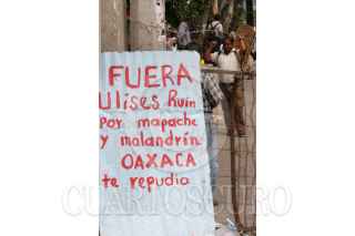 OAXACA, OAXACA, 04OCTUBRE2006.- Los integrantes de la Asamblea Populas de los Pueblos Oaxaqueños tomaron la resoluciòn de abandonar las intalaciones de Radio Oro como una acción para distender el conflicto y logar que se avanze en las negociaciones. En la imagen un pinta en contra del gobernadort oaxaqueño Ulises Ruíz, en una de las barricadas de las calles aledañas a la radiodifusora. FOTO: MOISÉS PABLO/CUARTOSCURO.COM