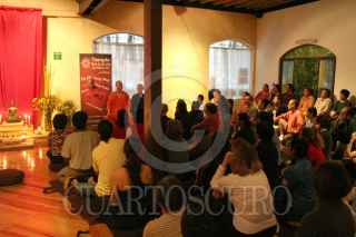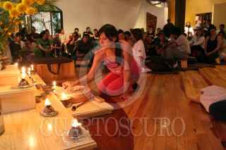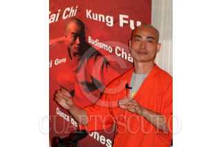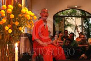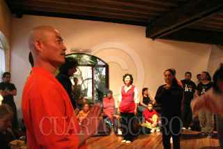 MÉXICO, D.F. 04OCTUBRE2006.- Integrantes del Centro Budista de la Ciudad de México esperaron la llegada de el monje de Shaolin SiFu Shi Yan Ming, quien dió una conferencia y presenció una rutina de Tai Chi que ofrecieron alumnos del lugar. FOTO: PAOLA HIDALGO/CUARTOSCURO.COM