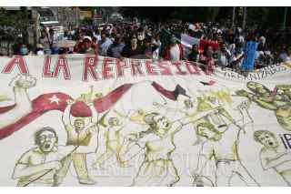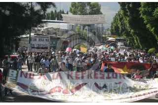 OAXACA, OAXACA, 05OCT5UBRE2006.- Estudiantes de la Universidad Autonoma Benito Juárez de Oaxca, marcharon de la universidad a el Zócalo, para la liberación de su compañero Pedro García que hace unos días fue detenido, además de exigir la renuncia del gobernador Ulises Ruíz. FOTO: MOISÉS PABLO/CUARTOSCURO.COM