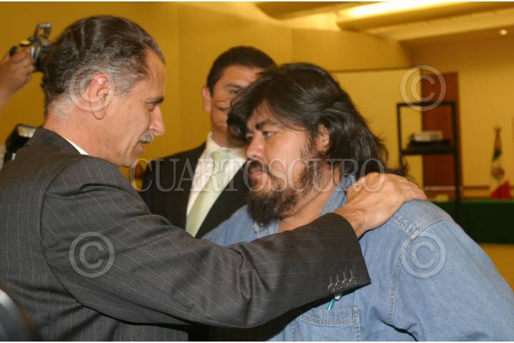MEXICO, D.F. 05OCTUBRE2006.- Enrique Rueda, lider de la sección 22 y Flavio Sosa lider de la APPO durante la conferencia que ofrecieron a los medios de comunicación al termino de la mesa con el secretario de Gobernación. FOTO: NELLY SALAS/CUARTOSCURO.COM
