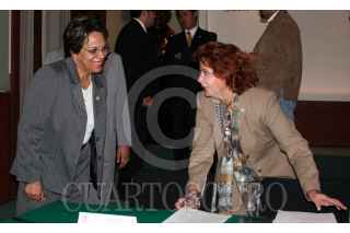 MÉXICO, D.F. 06OCTUBRE2006.- Se integró la comisión de cultura en el Palacio Legislativo. Las diputadas María de la Paz Quiñones Cornejo y Gloria Isabel Cañizo Cuevas minutos antes de tomar protesta. FOTO: PAOLA HIDALGO/CUARTOSCURO.COM