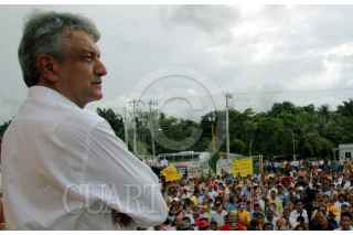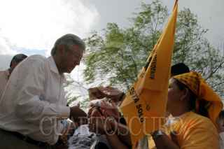 BALANCAN, TABASCO, 06OCTUBRE2006.- Andrés Manuel López Obrador acompaño al candidato a la gobernatura local, Cesar Raúl Ojeda Zubieta, por distintas localidades, en donde el perredista dijo que el ganará la elección y que se cumplirán todas sus propuesta de campaña. FOTO: MARCO POLO GUZMÁN HERNÁNDEZ/CUARTOSCURO.COM