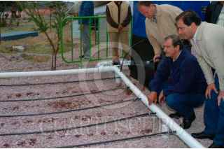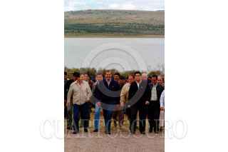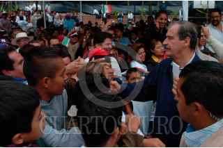 SAN JOSÉ DE GARCÍA, AGUASCALIENTES, 06OCTUBRE2006.- El Presidente Vicente Fox, acompañado de Luis Armando Reynoso Femat, Gobernador del Estado, a su arribo a la ceremonia de presentación del Proyecto de Modernización del Distrito de Riego 01 y Comida con Agroindustriales del Estado. FOTO: GUSTAVO BENÍTEZ/CUARTOSCURO.COM