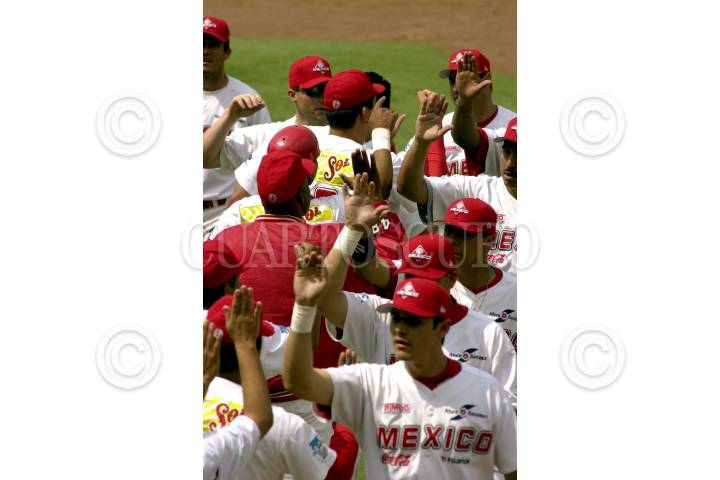 Heriberto Salas y Darret Brinkley de los Leones de Yucatán se encuentran al tratar de capturar una bola alta, en el cuartosjuego de la serie ante los Diablos de México. FOTO: David Bolaños/CUARTOSCURO.COM
