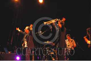 GUANUAJUATO, GUANUAJUATO, 11OCTUBRE2006.- En un concierto que mezcló ritmos como el jazz, el funk y electrónico, se presentó el grupo francéz Electro Delux, en la explanada de la Alhondiga de Granaditas, en el marco del XXXIV Festival Internacional Cervantino. FOTO: DAVID BOLAÑOS/CUARTOSCURO.COM