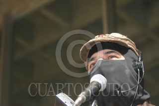 CULIACÁN, SINALOA 11 OCTUBRE 2006.- El Subcomandante Insurgente Marcos, Delegado Zero para La Otra Campaña durante reunión con mujeres integrantes de la Unión de madres con hijos desaparecidos de Sinaloa donde acordaron luchar juntos por la liberación de sus hijos y realizar un encuentro por la presentación con vida de los desaparecidos y justicia para las víctimas el próximo 1 de noviembre en Ciudad Juárez, Chihuahua. FOTO: MOYSES ZUÑIGA SANTIAGO/CUARTOSCURO.COM