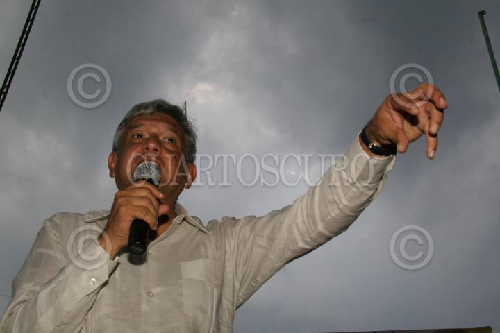 TEAPA, TABASCO, 11OCTUBRE2006.- El candidato a la gubernatura de la Coalición Por el Bien de Todos; Cesar Raúl Ojeda Zubieta realizó esta tarde el cierre de su campaña, en donde estuvo acompañado por Andrés Manuel López Obrador en las comunidades de Galeana, Juan Aldama y la cabecera Municipal. Con estos actos de campaña se acaban los proselitismos permitidos por las autoridades electorales. FOTO: MARCO POLO GUZMÁN HERN