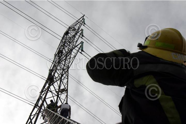 MÉXICO, D.F., 16OCTUBRE2006.- En la avenida Canal Nacional y calle 310 de la colonia Nueva Atzacoalcos el joven Marco Perez de 26 años intento suicidarse al subir a una de las torres de al tensión, un elemento del Heroico Cuerpo de Bomberos tras una negociación que tardo casi cuatro horas lo convenció de que bajara. FOTO: PEDRO MARRUFO/CUARTOSCURO.COM
