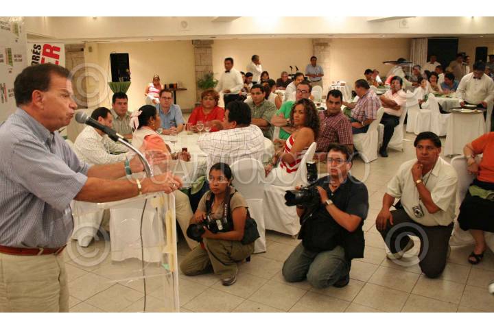 VILLAHERMOSA, TABASCO, 16OCTUBRE2006.- Andrés “El Químico” Granier Melo; candidato al gobierno por el PRI, y quien lleva la mayoría de las votaciones para Gobernador de estas pasadas elecciones se sentó a comer con distintos medios de comunicaciones locales para dar a conocer que será un gobernador de puertas abiertas sin distinción de partidos. FOTO: MARCO POLO GUZMÁN HERNÁNDEZ/CUARTOSCURO.COM