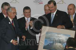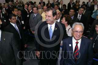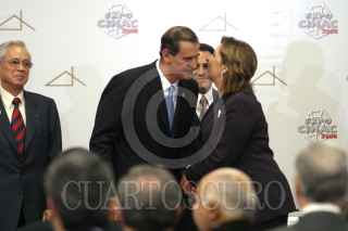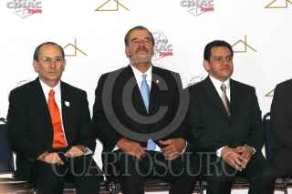 MEXICO, D.F. 17OCTUBRE2006.- El presidente Vicente Fox saluda a Ana Teresa Aranda, secretaria de Desarrollo Social a su llegada a la ceremonia de inauguración de la XVII Exposición Internacional de Edificación y Vivienda Expo CIHAC 2006. FOTO: NELLY SALAS/CUARTOSCURO.COM