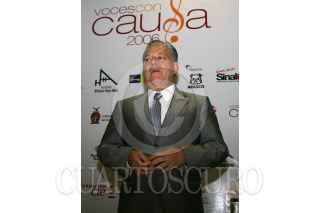MEXICO, D.F. 17OCTUBRE2006.- Jesús Aguilar Padilla, gobernador de Sinaloa, Guillermina Pilgram, directora de la Fundación CIE, José Ignacio, representante de empresarios de Sinaloa y Rogelio García, integrante de Pequeño Musical previo a la conferencia de Voces con Causa 2006 a beneficio de los damnificados del Huracán Lane en Sinaloa. FOTO: NELLY SALAS/CUARTOSCURO.COM