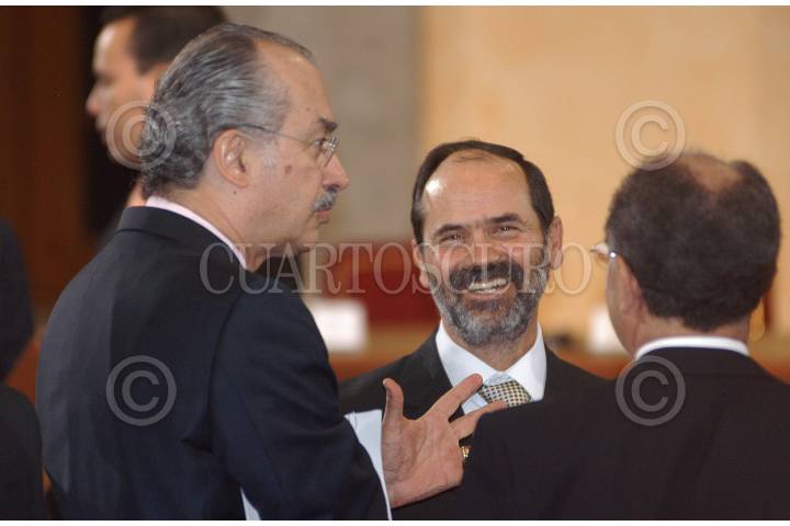 MÉXICO, D.F. 18OCTUBRE2006.- Francisco Gil Díaz, Secretario de hacienda y Crédito Público, y Vicente Fox Quesada, primer mandatario mexicano, durante el evento "Acciones y perspectivas del ambiente de negocios en México" realizado en el salón Adolfo López Mateos de la residencia oficial de Los Pinos. FOTO:IVÁN STEPHENS/CUARTOSCURO.COMCUARTOSCURO.COM