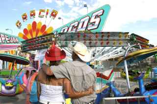 ECATEPEC, EDOMEX,18 DE OCTUBRE DEL 2006.- Una pareja observa los juegos de la feria, antes de llevarse a cabo un baile popular. Cientos de personas añoran el ambiente del norte del país: los bailes, la feria. los sombreros. FOTO: EUNICE ADORNO/CUARTOSCURO.COM