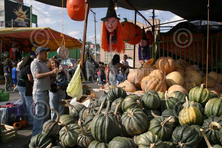 MEXICO, D.F. 22OCTUBRE2006.- En los diversos mercados de la ciudad se venden ya los elementos que conformaran las tradicones ofrendas de día de muertos, como el papel picado, os dulces de azucar y figuras de ceramica. FOTO: NELLY SALAS/CUARTOSCURO.COM