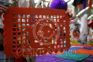 MEXICO, D.F. 22OCTUBRE2006.- En los diversos mercados de la ciudad se venden ya los elementos que conformaran las tradicones ofrendas de día de muertos, como el papel picado, os dulces de azucar y figuras de ceramica. FOTO: NELLY SALAS/CUARTOSCURO.COM