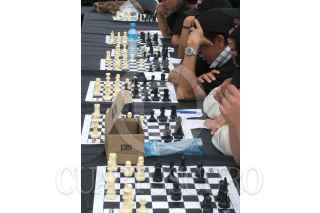 MÉXICO D.F. 22OCTUBRE2006.- Asistentes al Festival de Ajedrez Ciudad de México 2006, participaron en partidas simultáneas en el Zócalo capitalino. FOTO: SAUL LOPEZ/CUARTOSCURO.COM