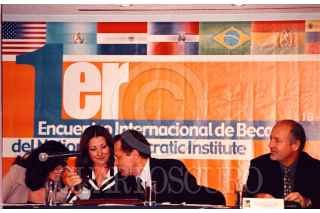 El secretario general del CEN del PRI, Rodolfo Echevarría, Marcela Jiménez, Gerardo le Chavallier durante el primer Encuentro Nacional de Becarios relizado por el National Democratic Institute. FOTO: Christian Palma/CUARTOSCURO.COM
