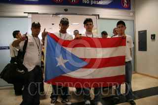 VILLAHERMOSA, TABASCO, 23OCTUBRE2006.- Atletas de diversas disciplinas procedentes de Puerto Rico arribaron al aeropuerto local para participar en un Dual Meet en donde se enfrentaran con deportistas mexicanos por espacio de cinco días. FOTO: MARCO POLO GUZMÁN. CUARTOSCURO.COM.