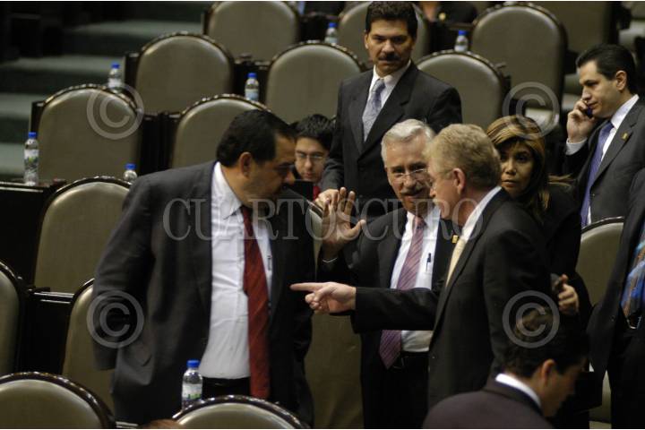 MÉXICO, D.F. 23OCTUBRE2006.- Hector Larios coordinador de bancada panista y Javier González Garza, coordinador de la bancada del PRD durante la sesión en el recinto legislativo de San Lázaro. FOTO: FERNANDO GARCÍA/CUARTOSCURO.COM