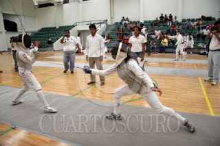 VILLAHERMOSA, TABASCO, 25OCTUBRE2006.- Las eliminatorias del Dual Meet en la disciplina de Esgrima, entre los deportistas de México y Puerto Rico, se efectúan en el auditorio de la Universidad Tecnológico de Villahermosa. FOTO: MARCO POLO GUZMÁN HERNÁNDEZ/CUARTOSCURO.COM