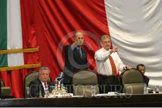 MÉXICO D.F. 30OCTUBRRE2006.- Los diputados Jesús González Garza coordinador de los diputados del PRD, Emilio Gamboa Patrón coordinador de la bancada del PRI en la cámara de diputados, durante la sesión donde se realizo el punto de acuerdo entre los coordinadores de los partidos para pedir la licencia o la renuncia del gobernador de Oaxaca. FOTO: GUILLERMO PEREA /CUARTOSCURO.COM