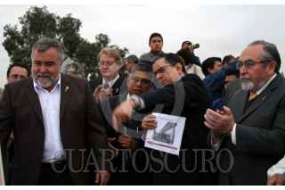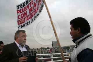 MÉXICO, D.F. 03NOVIEMBRE2006.- Alejandro Encinas, jefe de gobierno capitalino inauguró el distribuidor vial Taxqueña. a lo largo de la ceremonia hubieron protestas de vecinos de la zona, que pedían la construcción de puentes peatonales y reforzamiento de seguridad. FOTO: PAOLA HIDALGO/CUARTOSCURO.COM