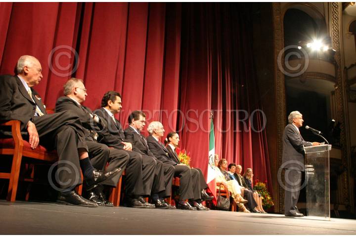 MEXICO D.F. 03NIVIEMBRE2006.- El ex candidato presidencial de la coalición por el Bien de Todos Andrés Manuel López Obrador, presentó a su “gabinete” que lo acompañará durante los próximo seis años en la denominada “presidencia legítima” esto en el Teatro de la Ciudad. FOTO: GUILLERMO PEREA/CUARTOSCURO.COM