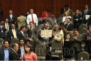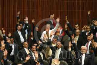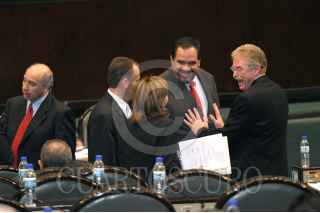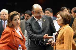 MÉXICO D.F. 07NOVIEMBRE2006.- Los diputados Martha Angélica Tagle Martínez de Conevrgencia, Alejandro Chanona coordinador de la bancada del mismo partido y Aída Arvizu Rivas del partido Alternativa durante la sesión en la Camara de Diputados donde se voto en contra de la ausencia del país del presidente Vicente Fox. FOTO: GUILLERMO PEREA/CUARTOSCURO.COM