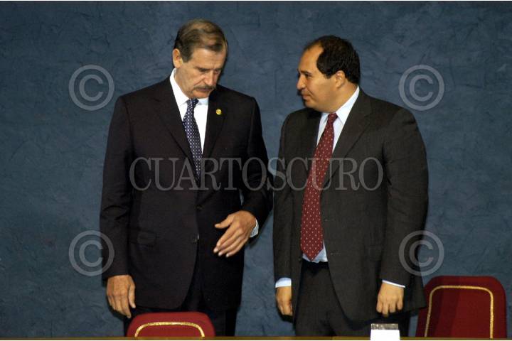 MÉXICO D.F. 08NOVIEMBRE2006.- el presidente Vicente Fox Quezada, acompañado de la secretaria de cultura Sari Bermúdez y Lazaro Cardenas Batel gobernador de Michoacan, durante la entrega del Premio Nacional de Ciencias y Artes, donde la actriz Julieta Egurrola le entrego una carta que contiene supuestas pruebas de violación de derechos humanos en Oaxaca. FOTO: FERNANDO GARCIA /CUARTOSCURO.COM