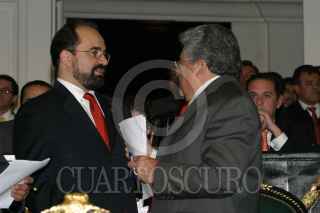 MÉXICO, D.F., 09NOVIEMBRE2006.- El presidente de la Comisión de Derechos Humanos local, Emilio Álvarez Icaza, platica con el asambleísta Ramón Miguel Hernández Labastida, durante la sesión en la que se discute la Ley de Sociedades de Convivencia. FOTO: NELLY SALAS/CUARTOSCURO.COM