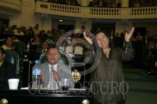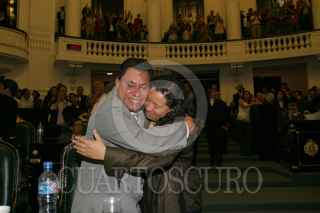 MEXICO, D.F.09NOVIEMBRE2006.- El asambleista Edgar Torres festeja con su compañera de partido Enoe Uranga la aprobación en lo general de la Ley de convivencia en la Asamblea Legislativa del D.F. FOTO: NELLY SALAS/CUARTOSCURO.COM