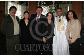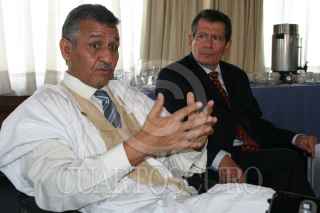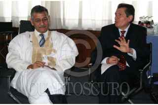 MÉXICO, D.F. 15NOVIEMBRE2006.- Ahmed Mulay Ali Hamadi, embajador de la República Árabe Saharaui Democrática y Victor Hugo Rascón Banada durante la conferencia de prensa que ofrecieron para anunciar la nueva temporaca teatral que la compañía "La Trouppe" en beneficio de la comunidad de niños saharaui de los campamentos de refugiados. FOTO: PAOLA HIDALGO/CUARTOSCURO.COM