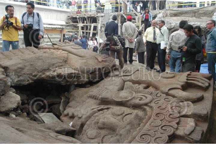 MÉXICO D.F. 16NOVIEMBRE2006.- Fue presentado el monolito que se encontró en las excavaciones de Templo Mayor, la pieza prehispanica representa a Tlaltecuhtli. El monolito es el más grande que se ha hallado de la cultura azteca. FOTO: GERMÁN ROMERO/CUARTOSCURO.COM