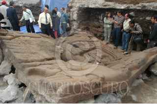 MÉXICO D.F. 16NOVIEMBRE2006.- Fue presentado el monolito que se encontró en las excavaciones de Templo Mayor, la pieza prehispanica representa a Tlaltecuhtli. El monolito es el más grande que se ha hallado de la cultura azteca. FOTO: GERMÁN ROMERO/CUARTOSCURO.COM