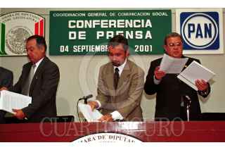 Martí Batres, Arturo Herviz y el líder sindical del ingenio "San Cristobal", Clemente Pacheco Mora; hablaron sobre la expropiación de ingenios azucareros por parte del Gobierno Federal. FOTO: Christian Palma/CUARTOSCURO.COM
