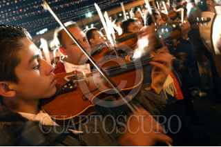 MÉXICO D.F. 22NOVIEMBRE2006.- Año con año se realizan los festejos de honor a Santa Cecilia, patrona de los músicos en la Plaza Garibaldi, donde decenas de mariachis se congregan para cantarle las mañanitas a su Santa patrona. FOTO: GUILLERMO PEREA/CUARTOSCURO.COM