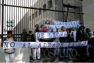 MÉXICO D.F. 22NOVIRMBRE2006.- Balfre Vargas Cortes diputado local y Alejandro Sánchez Camacho diputado federal ambos del PRD, junto con simpatizantes del partido, clausuraron simbolicamente la entrada pricipal de la Secretaria de Haciennda y Credito Público, en Av. Juárez como una forma de protesta por el incremento de precios de la gasolina y la leche. FOTO: GUILLERMO PEREA/CUARTOSCURO.COM